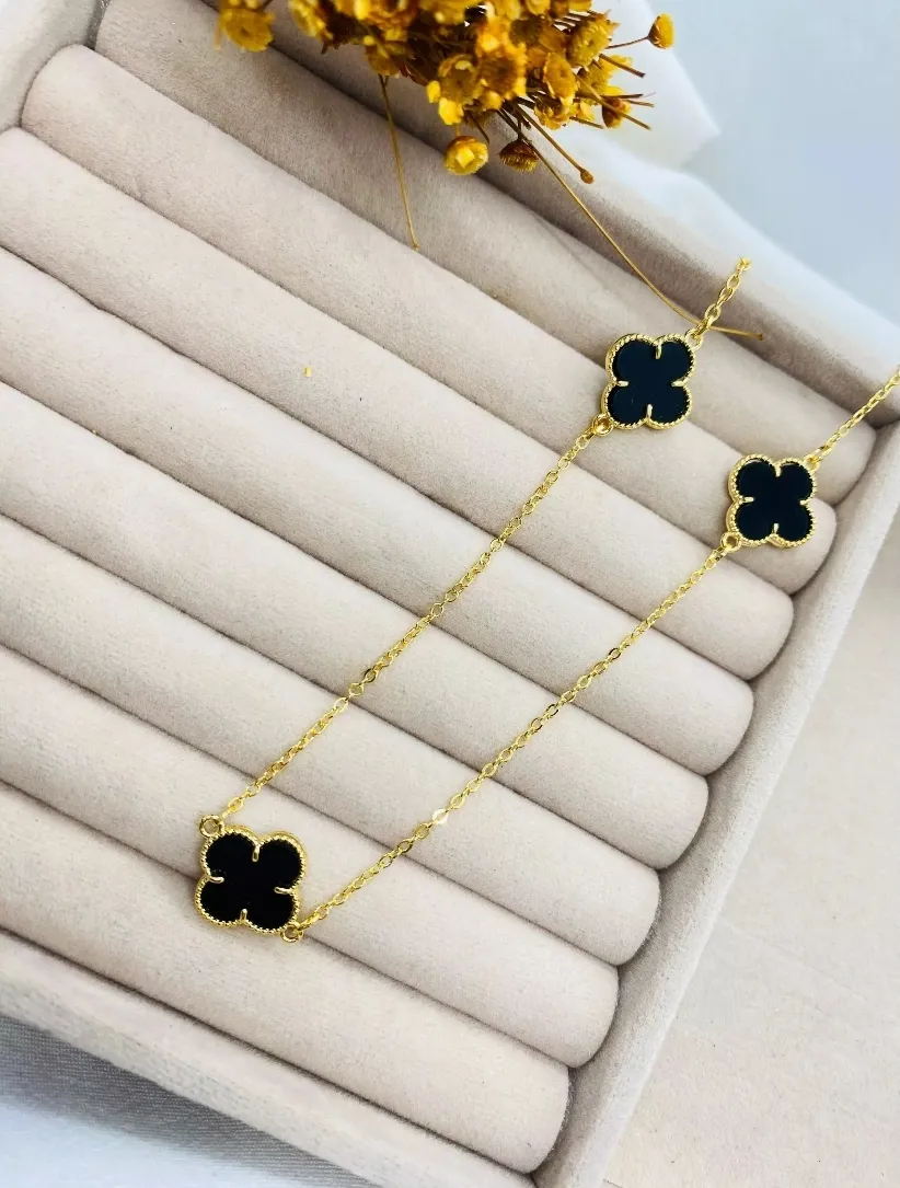Chocker Inspiração Virginia Três Trevo Dourado - Preto
